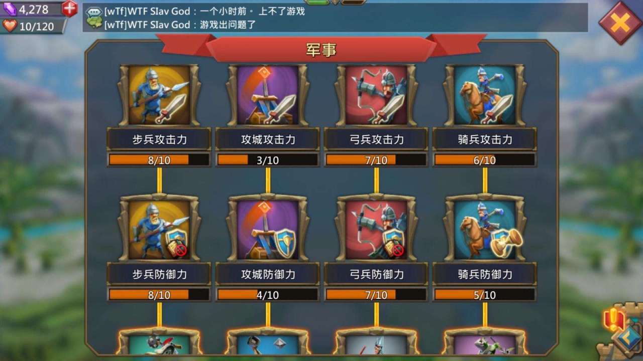 7.科技研发:还是老三样,先解决掉建筑的冷却问题,之后把军事最基本的几样研发出来,这样能保证三级骑兵有效的招募,最后的钱全用来搞采集的研发,等后续要是还有闲钱的话就弄一弄防御系统。