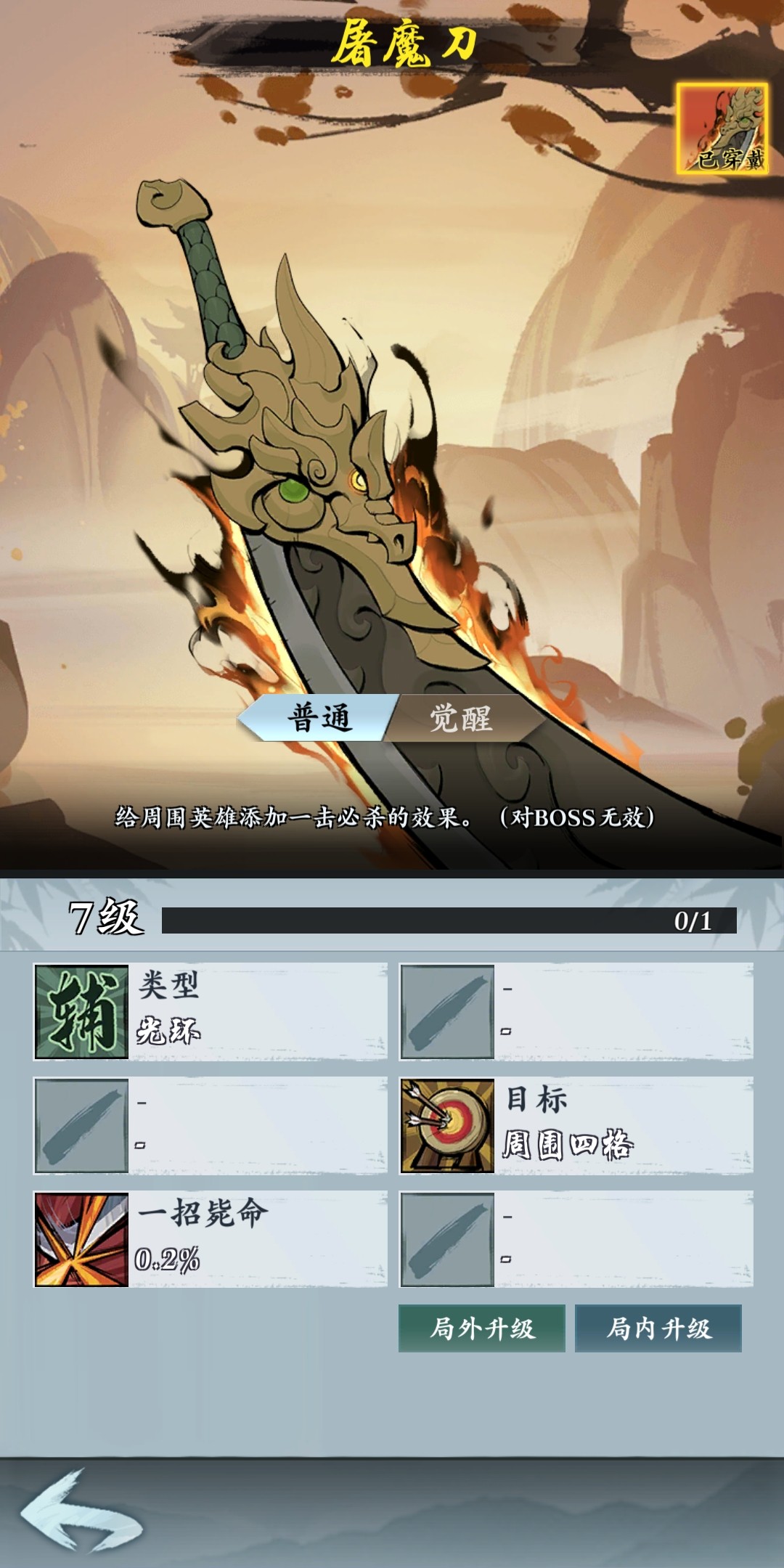 屠魔刀不同于其他辅助,在随机合并之前如果周边四格没有攻手,那么它是起不到什么作用的。想要玩好屠魔刀,对于攻手的伤害要求就比较高,小编在这里建议大家选用能够打出暴击的,类似萧北风、令狐空这类的攻手,会将屠魔刀的暴击加成发挥到很高的作用。