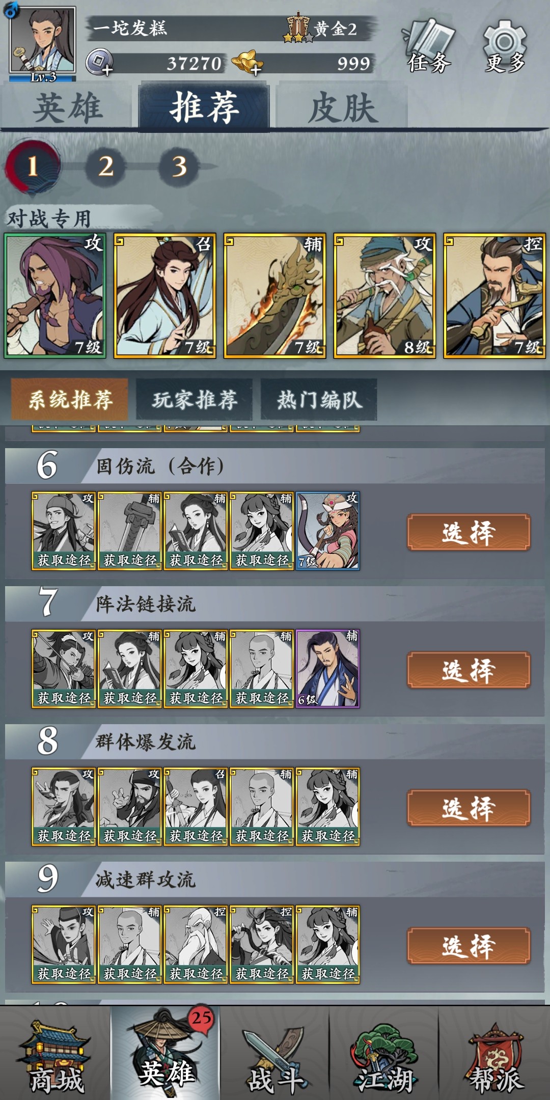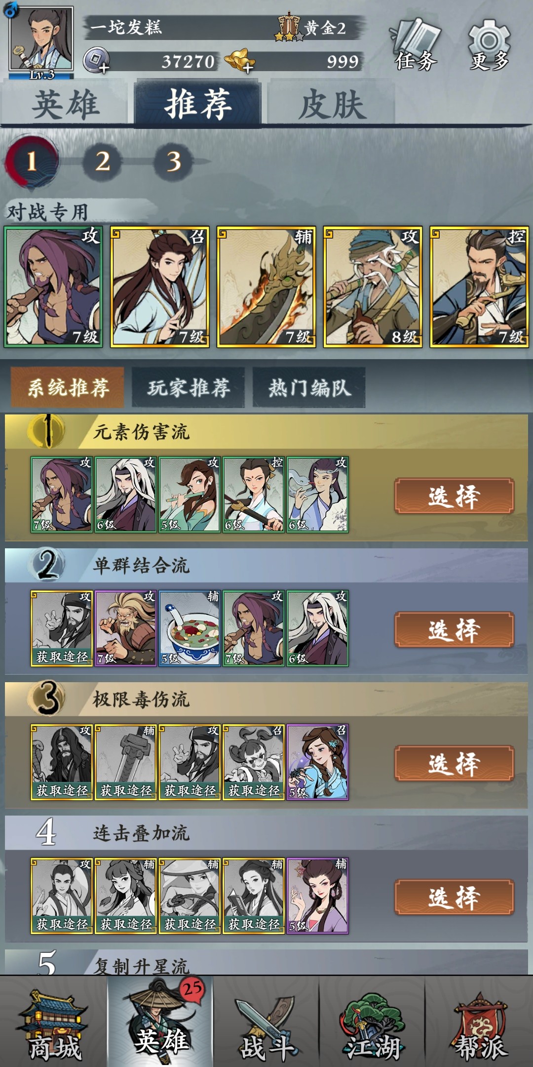 该阵营推荐杨峰、屠魔刀、萧北风、童思崖、小离组成。三个毒手减速加上一个强攻,前期可以先不用合成,直到屠魔刀和周边四格的英雄位置稳定之后再开始升级,这样面对源源不断的怪物才能拥有足够的时间将其消灭。