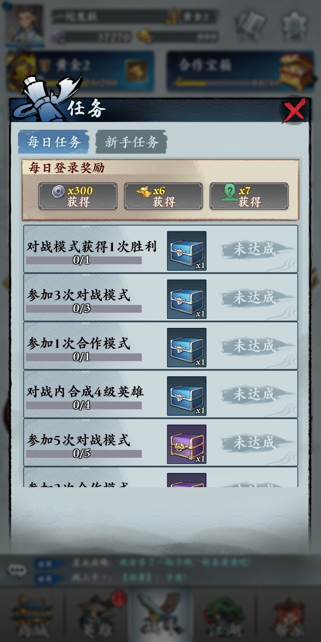 除了玩家的自由竞技模式,游戏是有主线任务的,每日的第一个胜场不仅可以得到积分,同时还能得到任务奖励。获得积分只是激发第一个任务,参加五次积分赛后不用获得胜利,仍然可以领取一个高级宝箱。