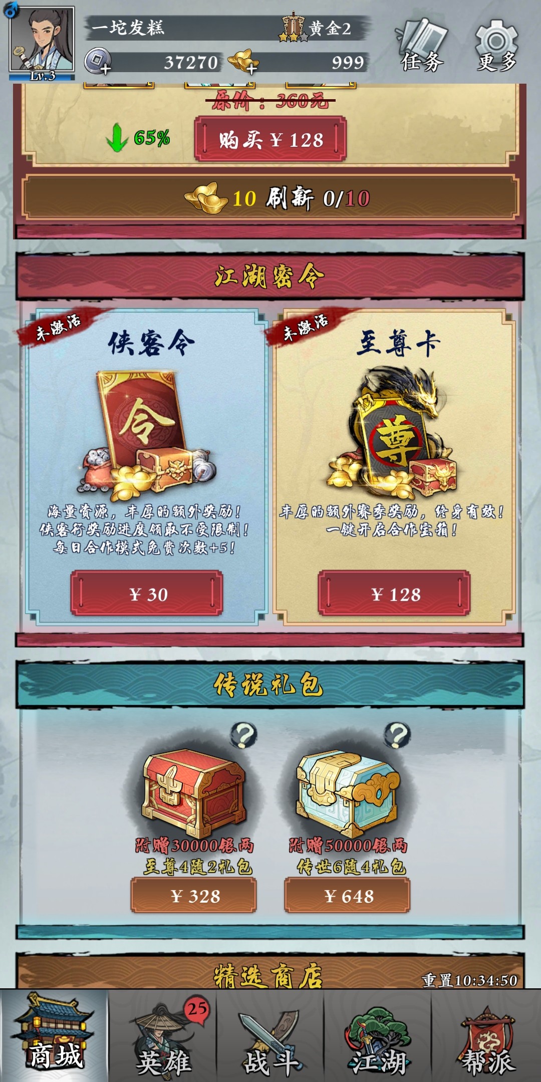 1、侠客令开宝箱
