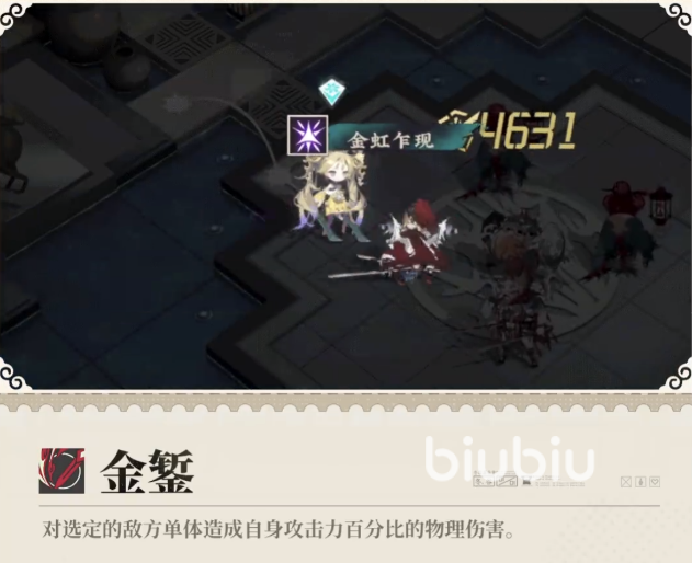 在技能方面的设定更是亮眼,比如绝技朱玉金辉拥有两格的射程,并且还能打出六次伤害,更夸张的是每次的攻击还能获得百分之四十的伤害加成。除此之外她的被动技能屠苏迎岁和金瓯万年还能进一步增伤和提供连击率,对战时可以做到绝对性的伤害碾压。