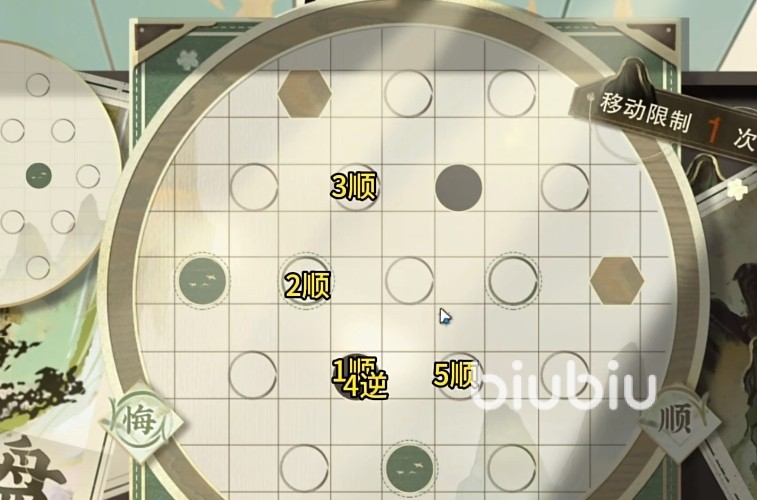 第三关的移动限制是五次机会,调节4-3逆时针旋转两次,然后在3-40顺时针。