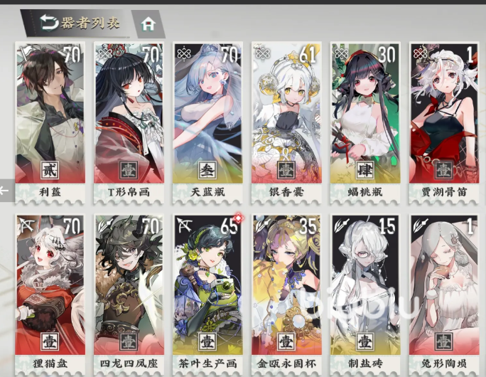 另一个强力阵容为云纹、鹿角立鹤、茶叶生产画、大神盒、宋金项饰、狸猫盘和万国金图。这个组合通过合理搭配不同角色的技能特点,能够在战斗中展现出惊人的实力。每个角色的特性都能得到充分发挥,从而实现最佳的团队协作效果。