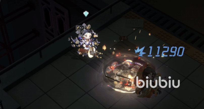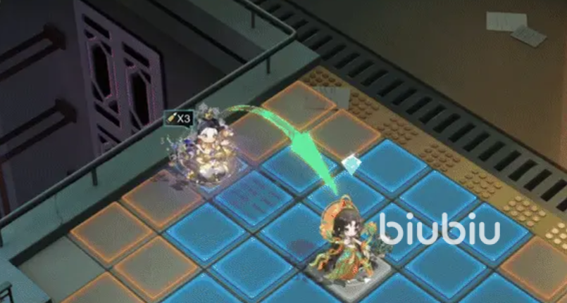 被动2“步虚太清”,展开任意治疗时,自己获得1层妙舞状态,在自身回合开始前,若妙舞状态叠加到5层,那该回合能传送到任意队友周围1格的空地,并击退该地块周围全体敌方1格;