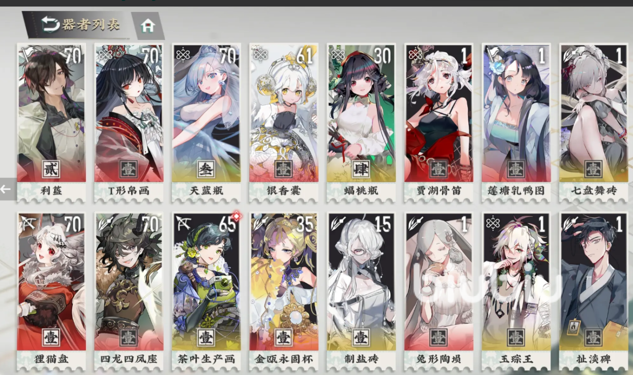 这个阵容的话不仅强度非常的高,还有很厉害的控制效果,里面的天蓝瓶作为很好获得的器者强度非常的高,不仅可以给其他的器者护盾还可以提供一定的减伤,有了这个辅助队伍基本上就不需要其他辅助了,而队伍中的T形帛书虽然不可以进行治疗,但是却拥有非常强大的召唤功能,她可以召唤一个金乌或者一个鸱鸮,不仅可以打出伤害还可以起到防御的作用,甚至还可以对敌方造成眩晕。