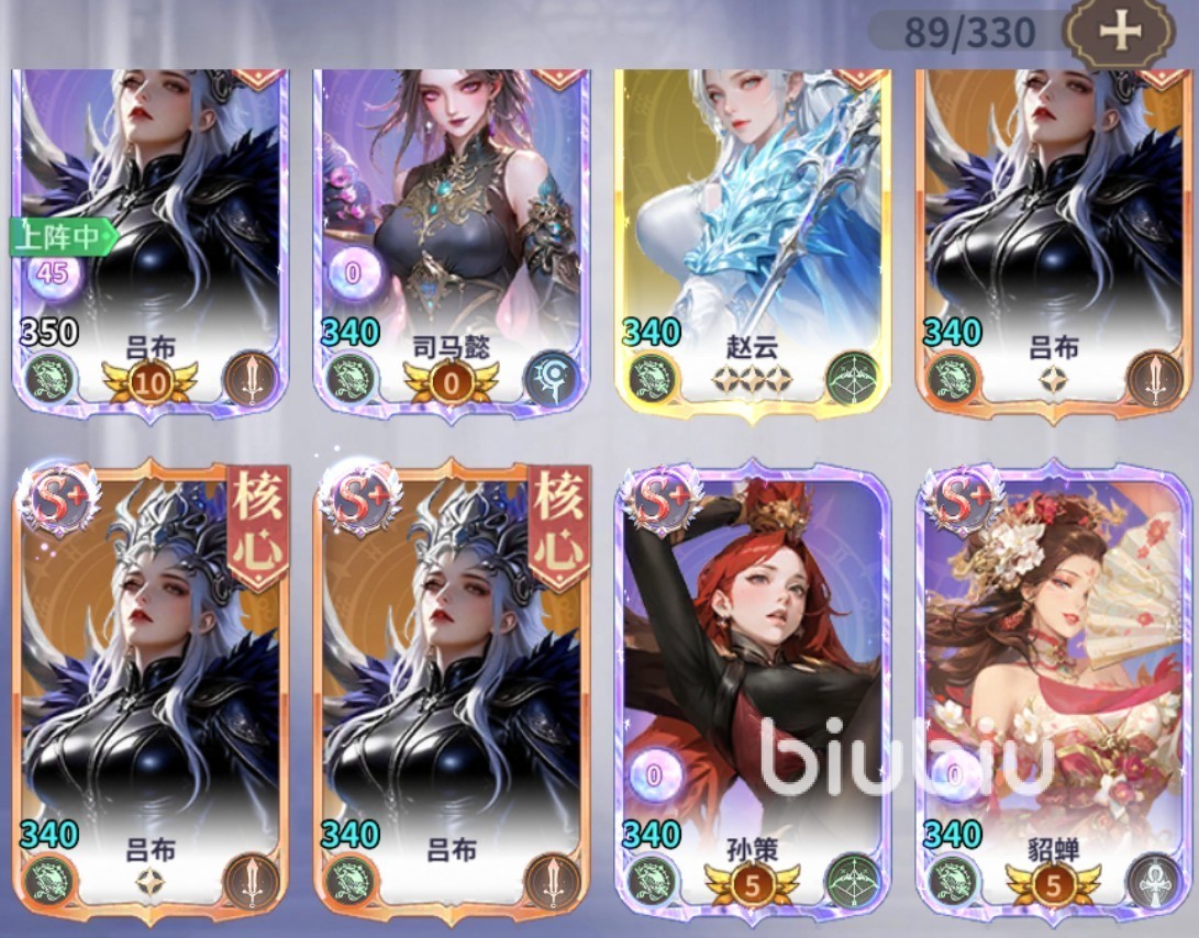 首先是第一套后期很厉害的阵容,核心角色是吕布,再搭配上青行灯、白羊女神和摩羯女神,青行灯能和吕布互相配合,让吕布的攻击力变高,另外两位女神还能额外增加伤害,打起来很容易接连打败敌人。