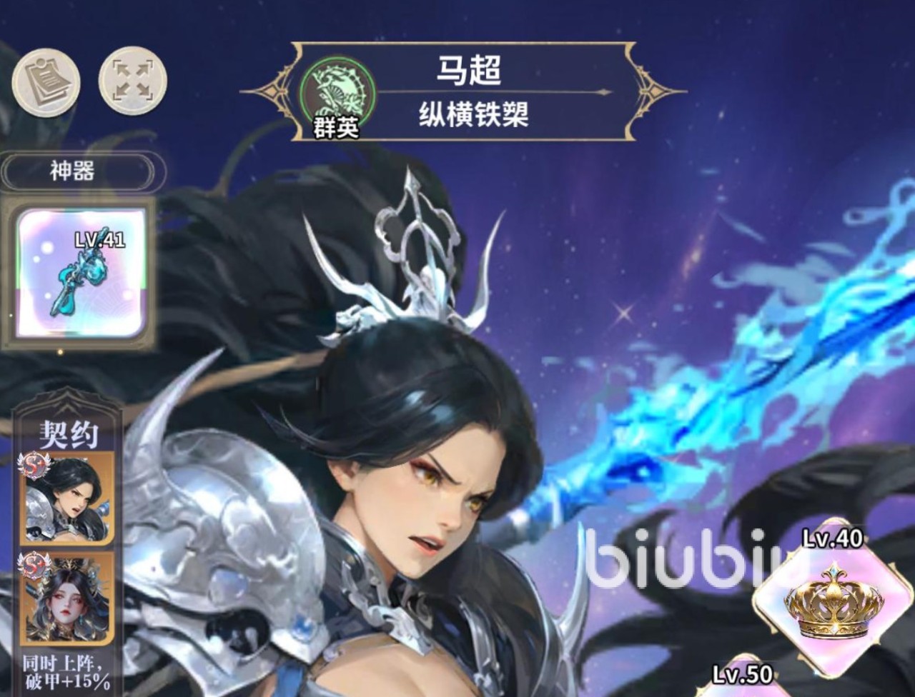 阵容方面的话,建议可搭配芬里尔、貂蝉、德古拉、克苏鲁。其中,芬里尔要保证顺利释放技能,貂蝉可提供治疗帮助队友释放技能,德古拉高等级后能连续控制敌人。在战斗时,小伙伴们记得灵活调整她们的位置,让马超或者德古拉完成收尾输出,克苏鲁可以作为辅助补充伤害。