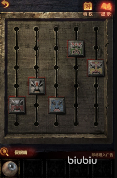玩家们需要将脸谱进行正确的方式进行排好。这样才可以打开这个箱子。在打开箱子之后,我们可以获得一个陶瓷所做的小人。之后我们需要点开门上的通风口,这个时候我们便可以用刚刚所获得的书签来把通风管上的螺丝给卸下来,之后我们需要使用陶瓷小人来将通风管中的玻璃球给拿出来。之后我们点击门上所挂的戏偶,这个时候需要对着戏偶的脸上使用玻璃球,将两个玻璃球安好后,我们便可以看见门上出现了把手,这个时候我们就可以出去了。