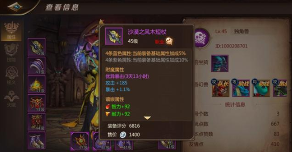 到了游戏后期,咒术师小伙伴大概会发觉智商和攻击力非常容易堆高,然而透过属性很难堆,因此在后期,各位能够思考将1-两个智商宝石换为透过宝石。但是在早期,堆智商提高DPS的特效相对显著。