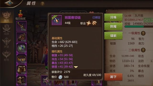 要想快速提高战力,装备的属性淬炼就免不了。每一件装备,都会额外附带一条属性。每条属性的淬炼,可以额外为游戏玩家带来相匹配的属性提高。每件装备至多能够淬炼四条属性值,再配上游戏玩家全身不一样部位的装备共有15件。因此单单是装备的属性淬炼,就可以提高游戏玩家很多的属性值,相对应的也可以提高游戏玩家很多的战力。