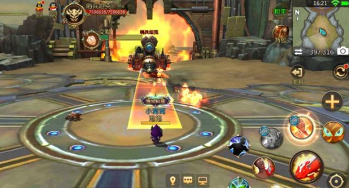 和尖兵坦克的作战中,园地时会展示许多符文,捡得以后,就可以提升攻击与回复性命,游戏玩家要实时捡得。不然便会被尖兵坦克所有吸走,并提高攻击力并回复生命值。