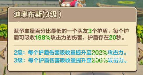 二技能同样具有回复怒气效果,此外,它还能令己方生命最低的角色回复大额血量,并短暂无敌。