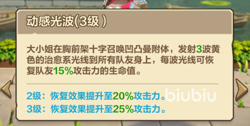 因此,在使用她的时候,建议不要放在队伍前排,毕竟她存活的越久,己方队伍的胜算就越大。