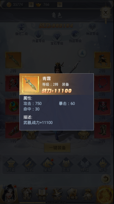 小编推荐玩家们在二转之后,即刻准备自己的高级装备。装备的品质上,最好选择橙色以上,这些装备带来的属性加成才是玩家们最想要的。例如“青霜”这一把橙色武器,在装备上之后,可以直接提升一万的战斗力给玩家,技能伤害还会提升750点。