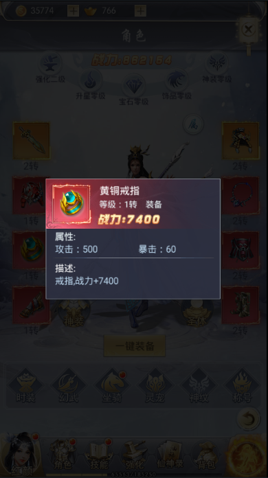 如果想要提升技能伤害能力,那么“黄铜戒指”也是必不可少的。在增加七千四战力的情况下,还会额外的增加500点技能伤害。搭配上武器,可以让角色战力变得更加强悍。