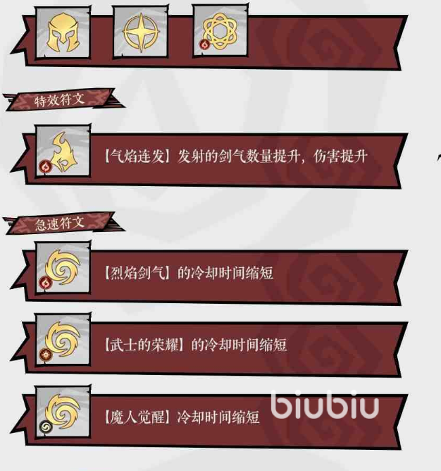 两件套就能让“巨型气焰”的基础伤害暴增32000%,没有必要去追求CD较长的四件套。符文选择方面也是同理。初始技能“火系亏”,前期可以点居合,后期换血怒;威能技选择“气焰连发”;主宰技前期建议带“烈焰残响”,后期穿四件套比较亏伤害,建议换成“风行者”;守护技能点“光辉”,毕竟火系是纯近战技能,还是比较依赖贴脸输出的。