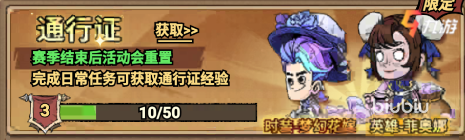 通行证:每个赛季都会重置建议是[30元进阶通行证]与[98元至尊通行证]同时开启,处理能够解锁时装和钻石奖励以外,还能获取新英雄碎片,当前赛季只要在玩就必买了,只要完成每日日常任务就能解锁奖励,难度不高。