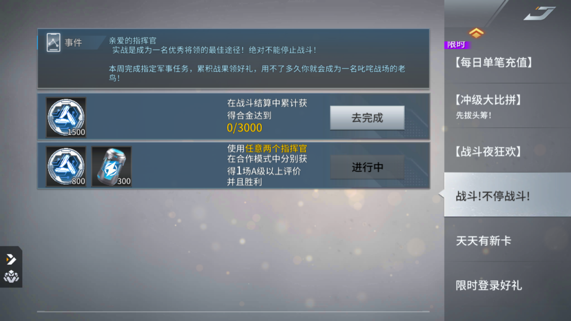 (3)战队任务:想要快速刷合计的话,那么假日一个战队是少不了的。完成战队任务也能得到一定数量的核心,并且战队任务中的合金是不算做每周合金上限中的。