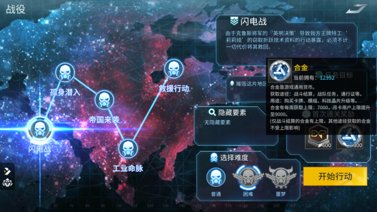 (4)单人模式:完成单人模式中的“战役”可以得到大量的合金,不过每个关卡的每个难度都只能获取一次,不过想要得到上万的合金还是很贱的。