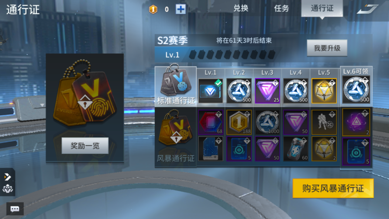 (3)通行证:通行证需要使用钱来购买,其中分为“风暴通行证”和“风暴通行证冲刺包”。