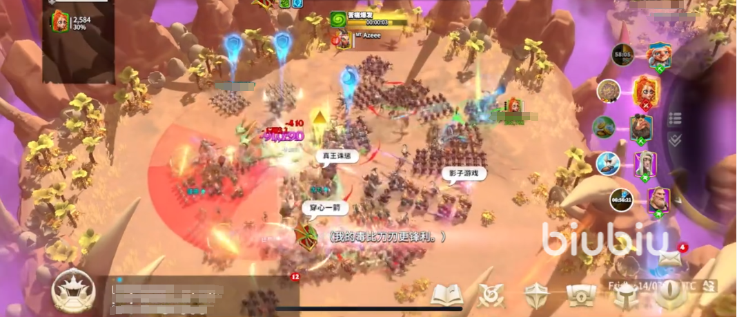 精英多头蛇和普通多头蛇大部分关键技能都是一样的,在不同的时间段会释放不同的技能,10秒时释放“利齿撕咬”,它会进行撕咬,对前方扇形范围内所有部队造成一次魔法伤害,所以大家需要躲开红色的扇形区域。