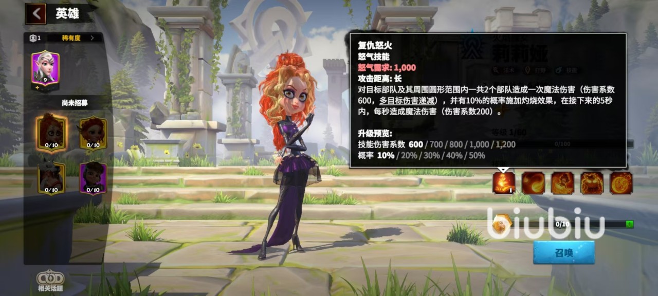 因为大家在打野过程中,主要面对的敌人就是地图上的各种黑暗灵和黑暗生物,所以要选择正确的打野英雄,他们可以造成更多的伤害和额外效果。小编推荐大家选择莉莉娅、妮可和巴吉这三名英雄作为自己的打野选择。莉莉娅是大家非常常用的英雄,称号是火焰魔女,自身可以使用怒气技能,伤害目标以及周围范围内的最多两个部队。造成魔法伤害有几率施加灼烧效果,被灼烧的目标,接下来的5秒内持续受到魔法伤害。