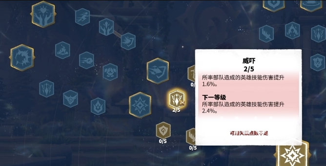 由于是法师角色,所以核心加点方案便是快速积攒怒气。这样才能更频繁的释放强大的毒技能,另外也要将威吓这个技能点满。可以有效的提升部队以及技能伤害,让你一次性打出成吨的输出。