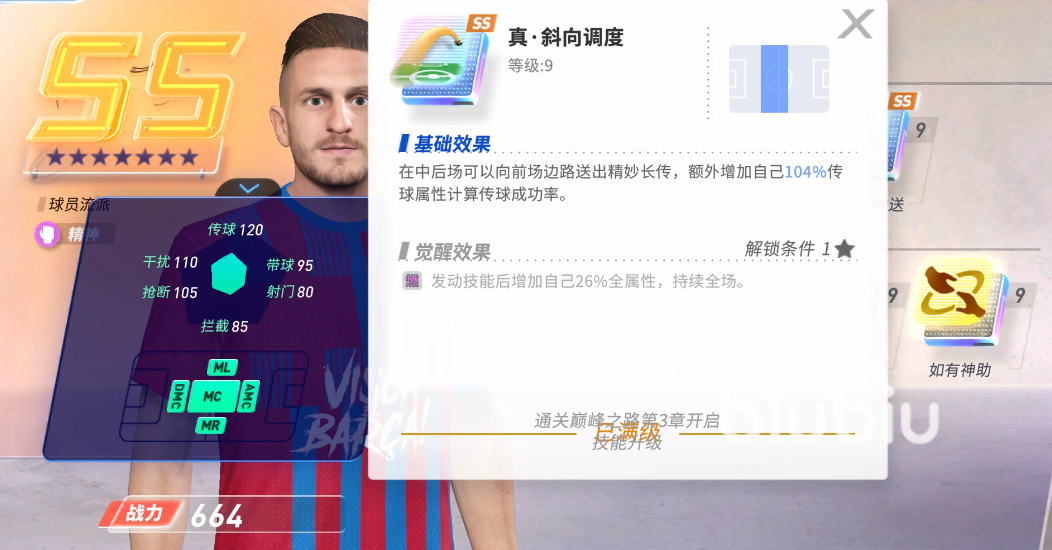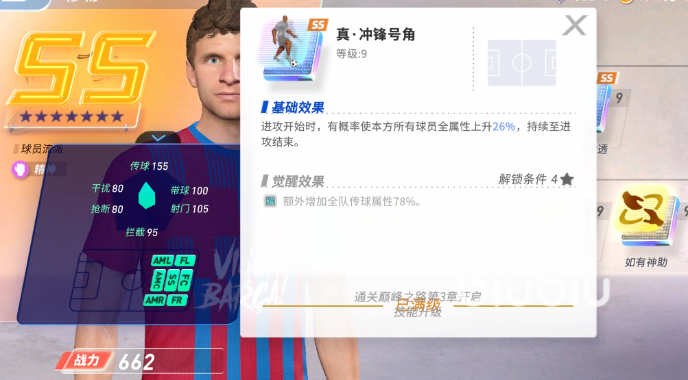 这是一位后卫,所以属性上以防守见长,但技能中又配上了不少对传球增益的效果,因此还有很大的组织潜力可供激发。