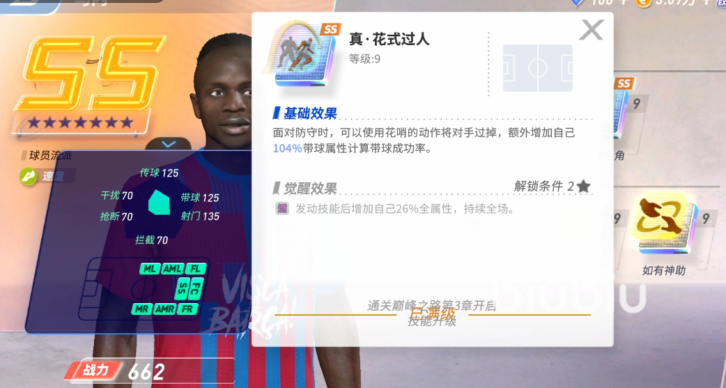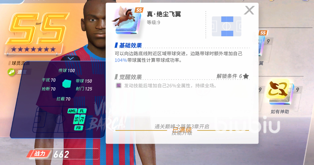 他的风格是以带球见长,技能上也都以围绕过人为主,并且潜力不错,在场时能增加全队属性。