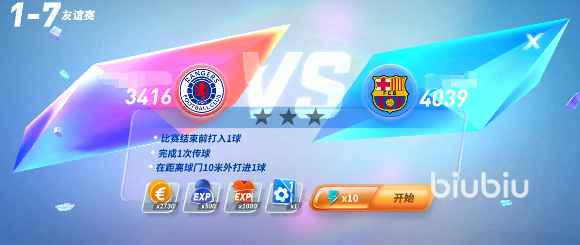 所有条件都完成的话一个关卡即可获得满星,满星时是有招募券,球员升级券等实用材料可供领取的,有了这些,你阵中的球员将变得更加出色。