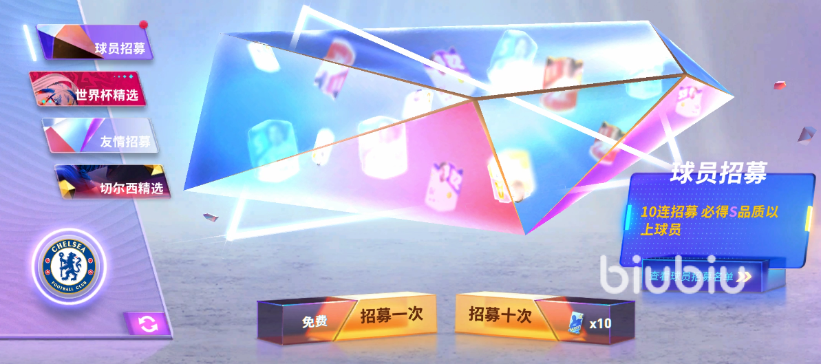 球员可通过招募获得,奖池的话有四种形式可供选择,最近这段时间正值世界杯,所以招募奖池也推出了相应的系列。