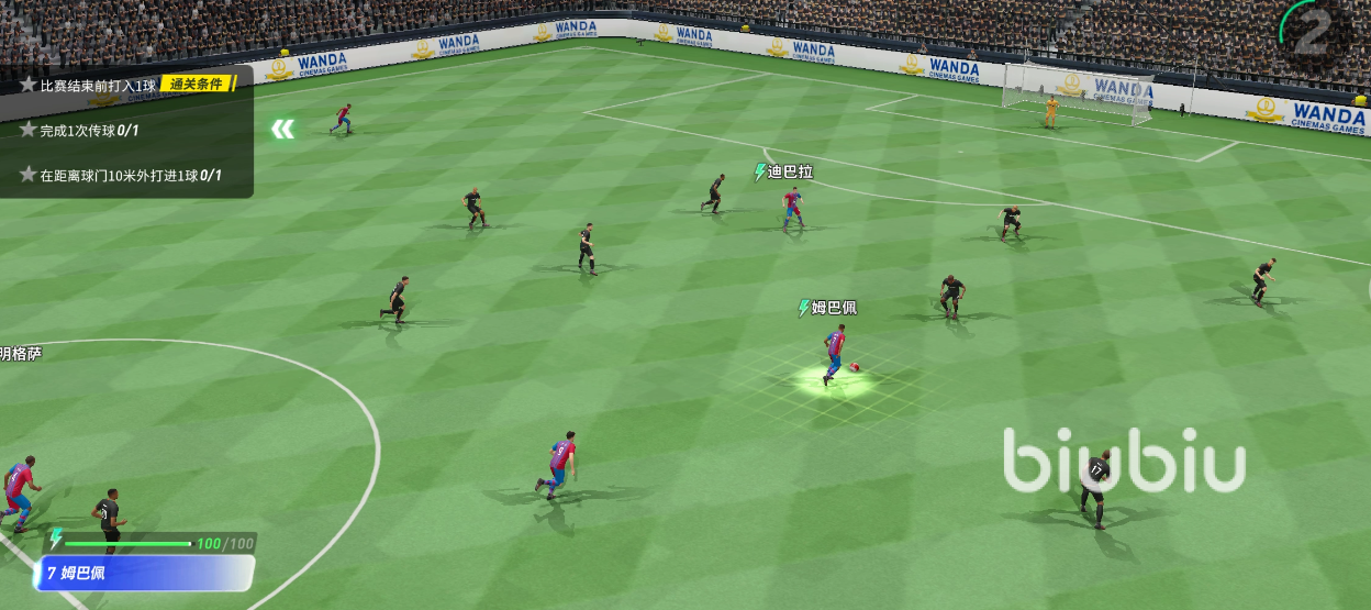 每个关卡都有着指定的目标,通关条件的话,是必须要进球的,其他两个条件则可能是规定以怎样的方式进球,或是执行一下传球或防守战术。