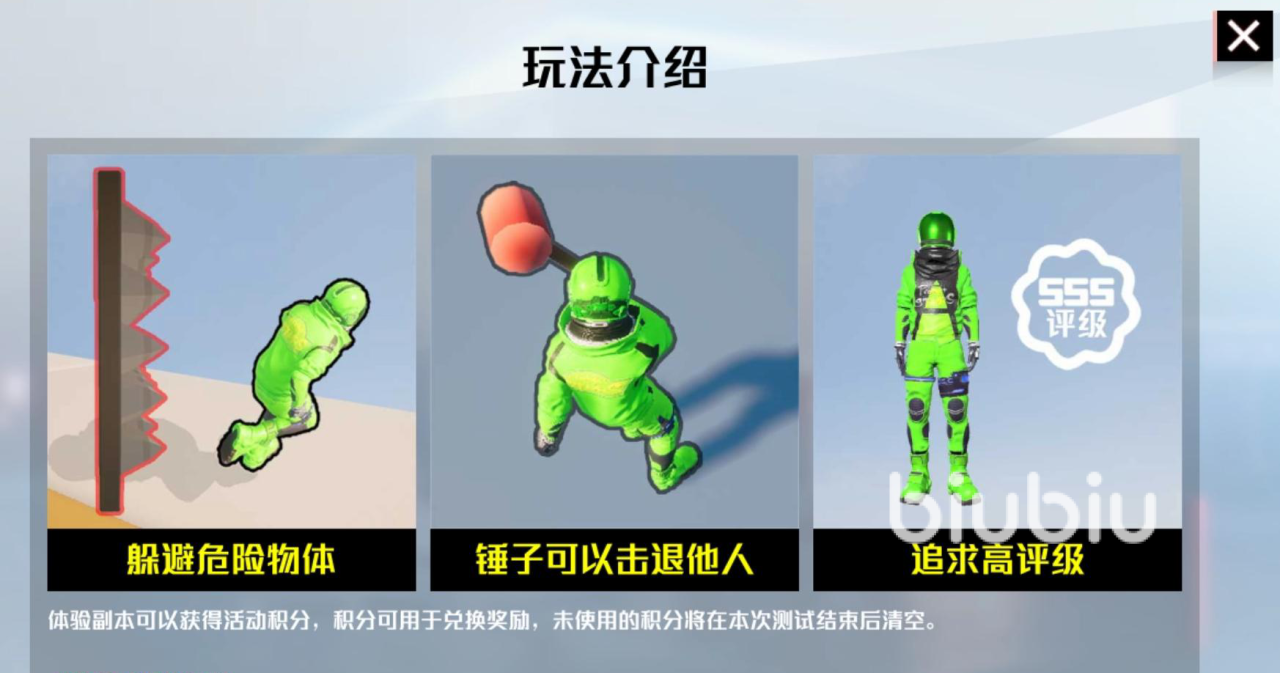 钉板坠落:地图顶部出现两面“钉板”持续坠落,这个玩法很考验玩家的反应,玩家需要观察并前往钉板中间的间隙处进行躲闪。