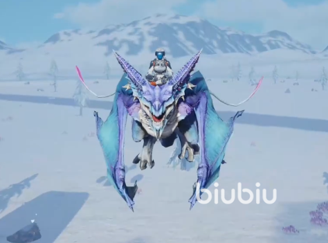 说起游戏中雪山区域的资源点,其实还是有很多的,首先要带大家看的是冰霜龙这个飞行坐骑的刷新点,这个刷新点就在雪山区域的右上角位置,在前往右上角后大家会来到雪山的半山腰,在这里大家就能看到这个冰霜龙了。