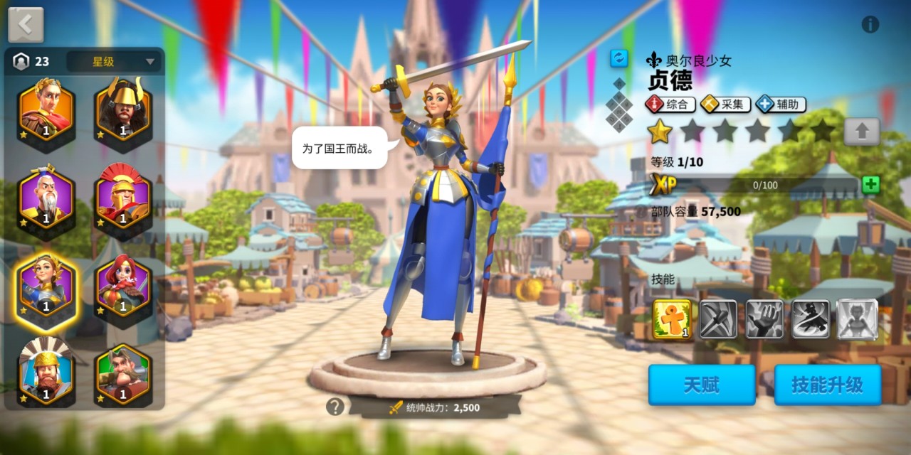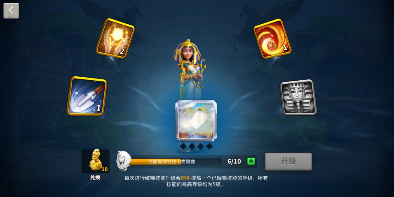 所有英雄都有1个大招、3个被动技能和1个觉醒技能,升级技能可增加伤害、加强增益和削弱效果。技能的升级需要消耗该将领的专属雕像,同品质的通用雕像可等比例兑换哦!