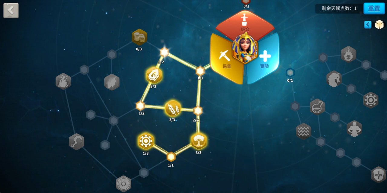 将领每升一级还会获得一个天赋点数,天赋点数可用来培养将领定位的三方面能力,如楠木正成对应的就是城防、技能和弓兵。天赋树需要依次解锁,将领在升到4、5星时还将获得额外的天赋点数。
