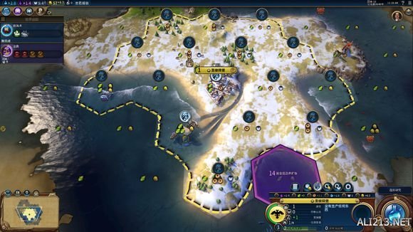 选择的是俄罗斯冻土+1和+1的特征,万神殿选择极地之光,走宗教线路,而lz便是选择帆海高新科技一条线,快速探明四周局面,自小岛扩大出去的线路,从开始游戏就迈向基本不一样的2个方位。