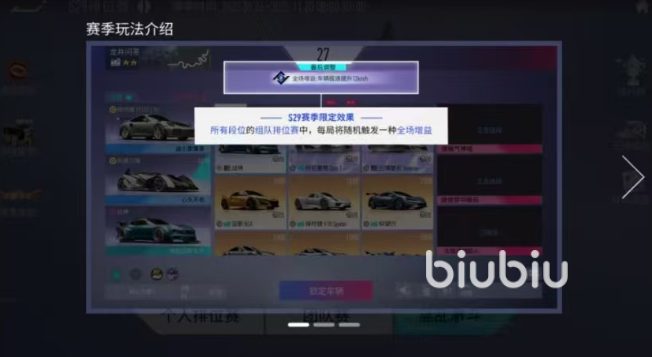 首先新赛季排位赛时间为9月26日到11月2日,新赛季首先带来的最新的效果全场增益,全场增益包含极速、能量、集气三种,每局会随机触发一种对所有人都会生效,并且段位达到宗师车手4后,对局将会变成翻牌选车,双方首位选定车辆的玩家将获得额外的飞升增益。