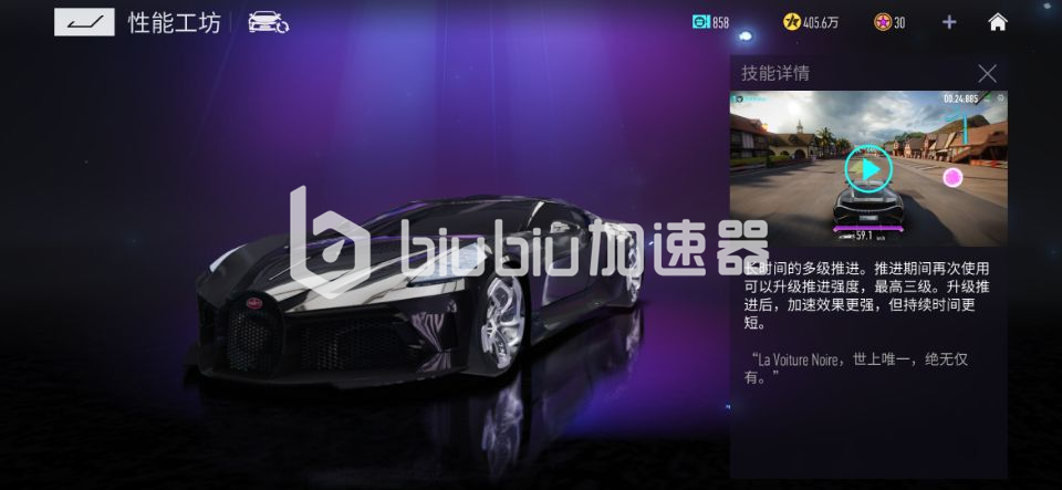 剩下竞速位置中的好车自然是布加迪榜上有名,本身在现实中的人气和时速就摆在那里,而且它的技能也是震惊四座,多级推进在日常比赛中可是竞速的利器,神仙车当之无愧。