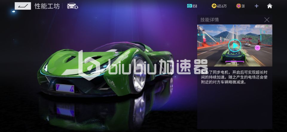 干扰位的另一辆“绿弟”同样也有电机开启,并且开启后自身有超长加速,减速敌方的同时自身提速,十分刺激哦。