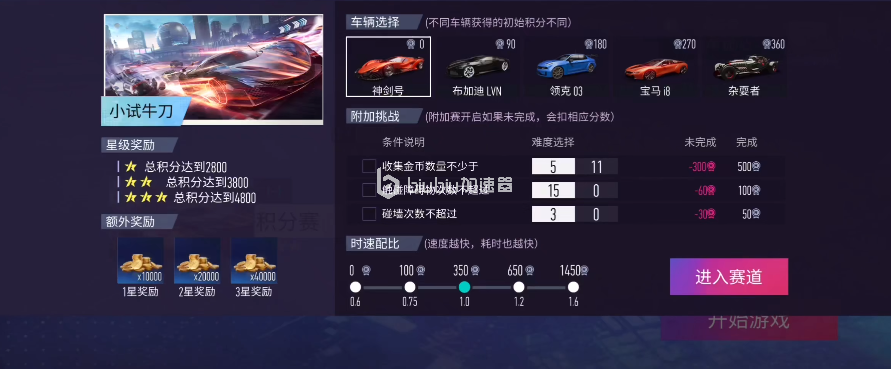 不过值得庆幸的是,在王牌挑战模式中玩家只能使用给定的车辆,且比赛中的其它车辆都是NPC操作的。这样一来其它车辆对我们的干扰就变得不值一提,而且玩家本身的车辆练度也不会影响在王牌挑战中的发挥,大家耐心磨炼技术就可以顺利通关了。