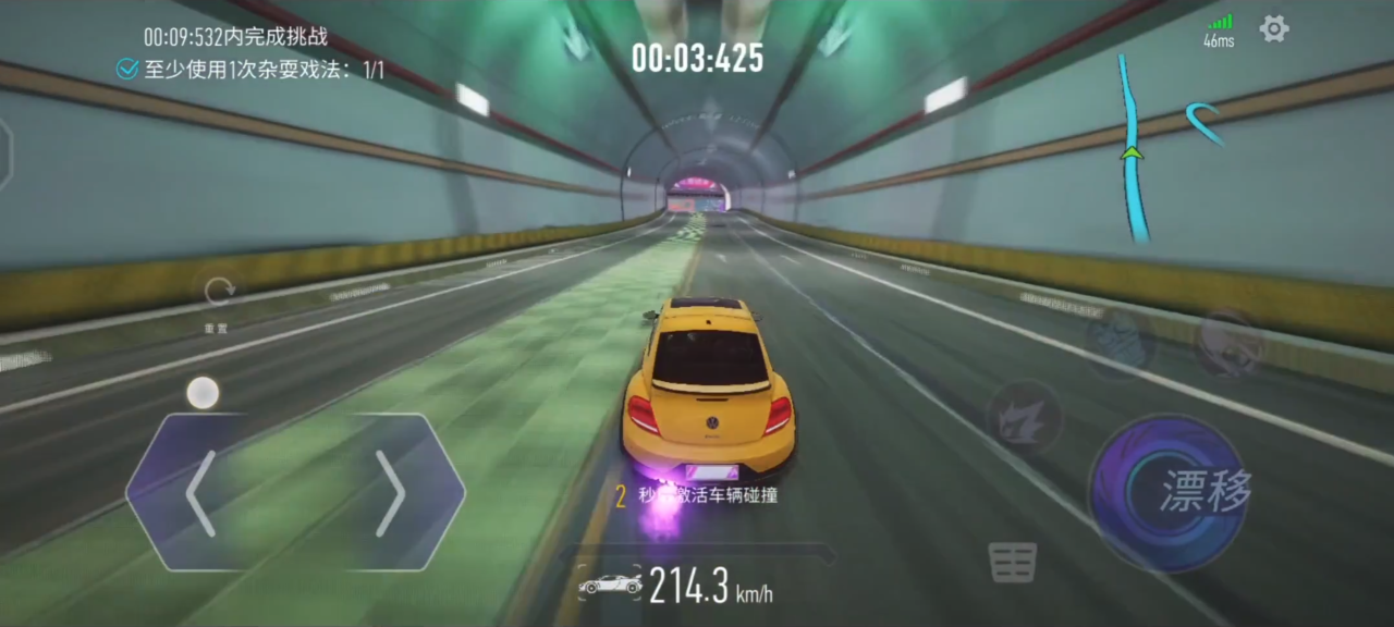 龙卷冲锋呢就非常简单了,在模块中会有一段空中飞跃的赛道,我们只需要在空中释放大招就可以完成这个模块了,这个模块也是小编认为最简单的一个模块。人车合一比较难一点,我们需要在模块开始的时候进入一个加速带,在离开加速带一秒之后立马点击大招,并且还要在接下来的赛道中不能有任何碰撞才能过关。