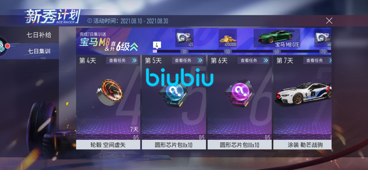 首先我们来说m8的获取方法,小伙伴们可以在新手注册的七天之内完成任务,成就点数到达60点之后就能送大家这两车了,另外完成其他任务还会有专属涂装赠送哦,喜欢的小伙伴们千万不要错过。毕竟这辆可以媲美传说级跑车的车可不多见,错过活动再想获得的话只能等开箱子慢慢开了,这样的话就太氪金了,对平民小伙伴们不太友好。