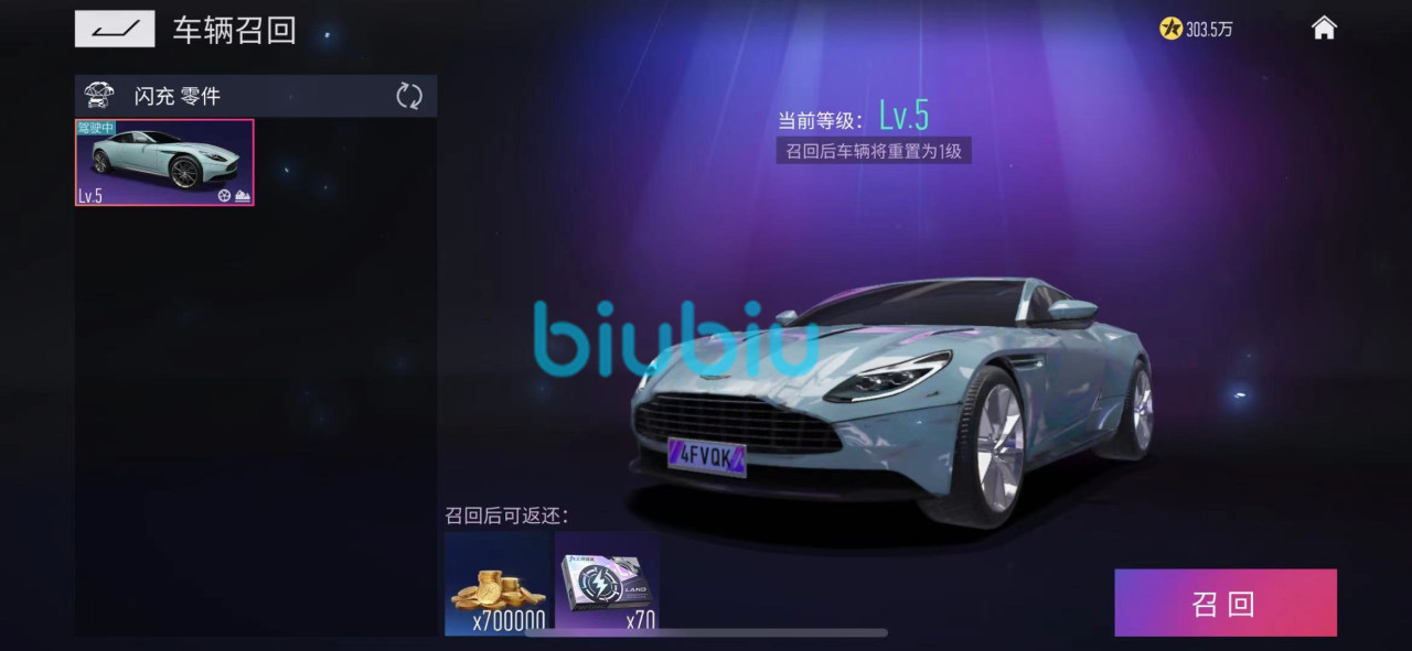 当我们不想继续培养该车辆也可以对其进行召回,召回车辆其实就是重置赛车,使赛车回到出厂状态,将赛车所有的等级和养成进度统统还原到初始状态,同时将赛车的升级资源进行返回,因此各位玩家不必担心培养赛车的资源问题,可以大胆尝试各培养方法。具体召回的操作方如下: