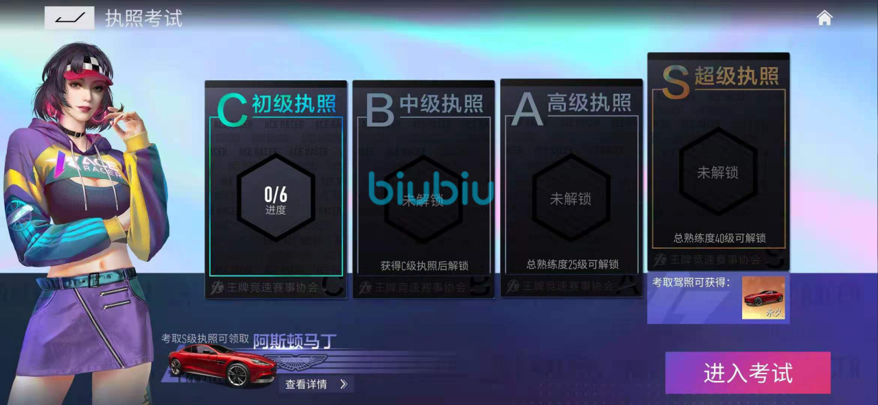阿斯顿马丁的唯一获取方法,就是考取s级的驾照。如果你想要考s级的驾照的话,就得先从c级考起。之后以此类推,考到a级之后,并且总的熟练度达到40级,就可以解锁s级驾照的考试资格。不过这个驾照也不是那么容易考的,需要你有很强的操作,才可以轻松考取这个驾照。只要你顺利考取完成之后,再点击领取,即可获得阿斯顿马丁。