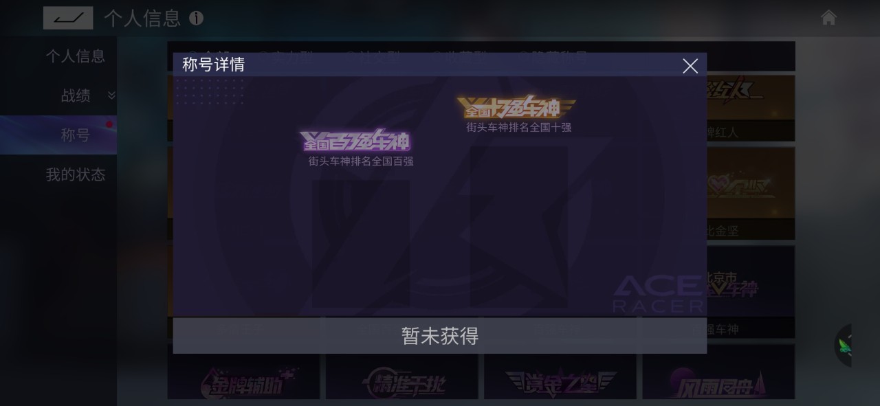 出了区域百强车神称号外,游戏中还有省级百强车神和全国百强车神的荣誉称号,这些都是根据玩家的跑图成绩来判定的,假如我们的成绩达到省级前100或者全国前100时就会自动获得,玩家所在区域越繁华的百强车神称号竞争程度越激烈。