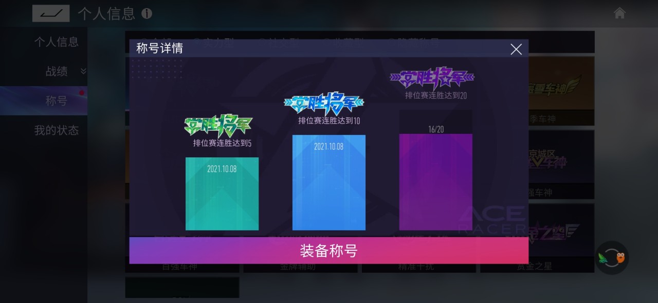 2021年10月16日 15:52 来源:肥肥百强车神是很多小伙伴都梦寐以求的称号,戴上它可以让很多人一眼得知自己的实力,那么王牌竞速中百强车神怎么获得呢?下面小编就为大家分享一下该如何获得百强车神的称号,对此感兴趣的小伙伴快来看看吧。