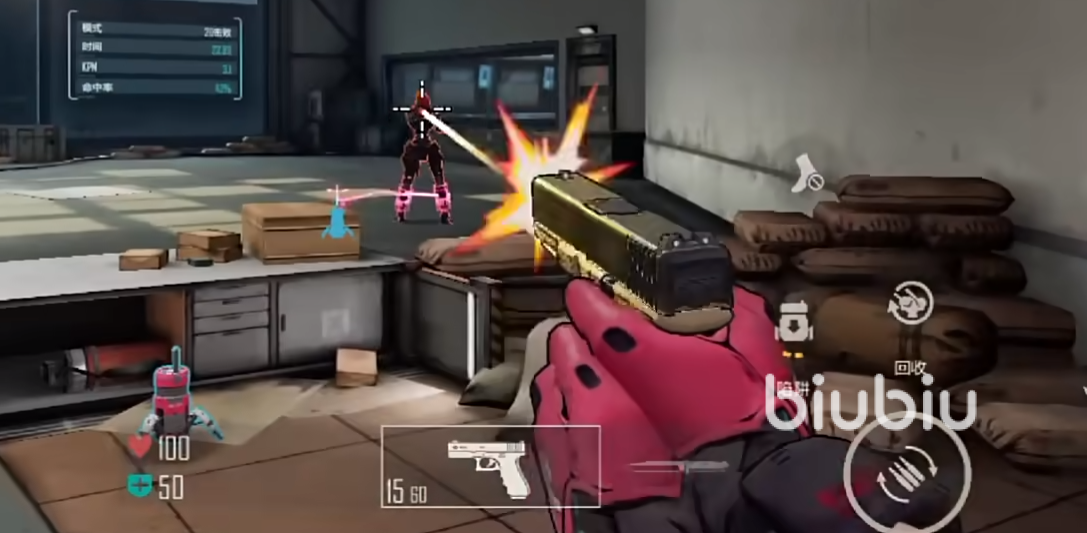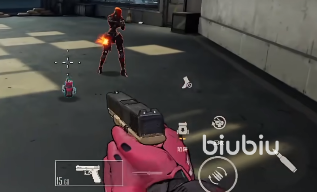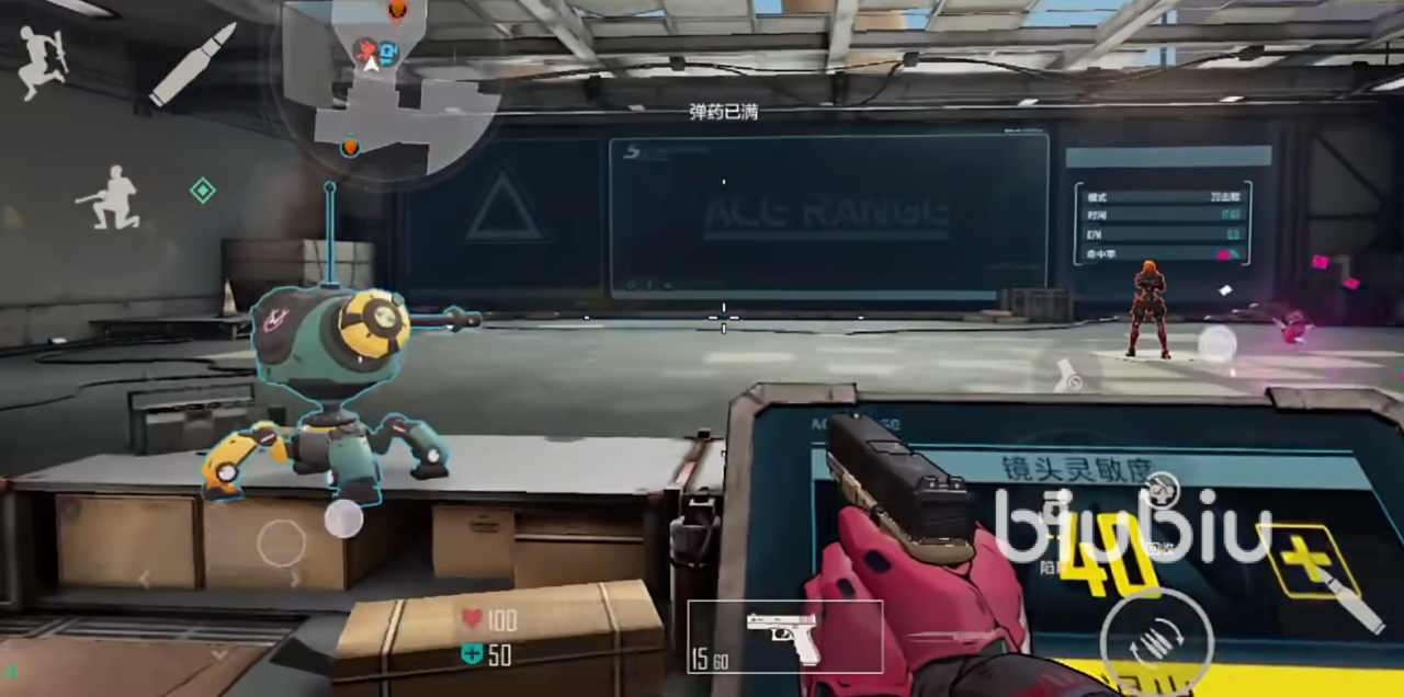 叶羽的一技能叫做主动炮台,顾名思义就是朝着一个方向放置一架炮台,并且炮台会自动攻击前方范围内出现的敌人。当然若是被敌人攻击后炮台也会被摧毁,另外也可以快速回收。布置炮台的时候,也可以通过切换按钮迅速地调节好炮台前后朝向,若是不再激活范围之内的时候,炮台便会处于休眠状态。炮台也有使用次数,用完了之后需要等待时间到了之后才好恢复。