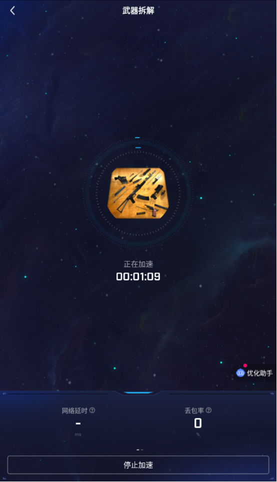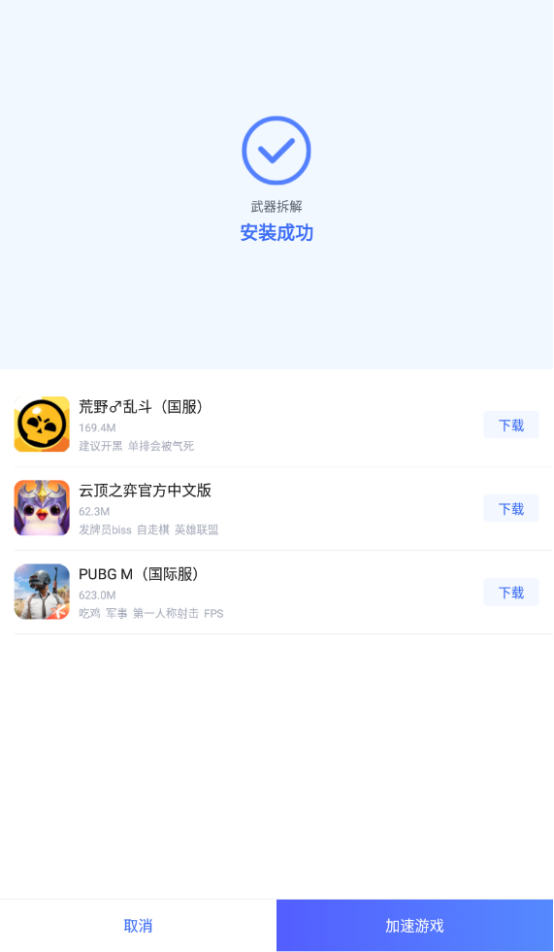 成功下载和安装武器拆解以后,接下来就是用Biubiu给游戏加速的环节。如果想要立即体验,那么请选择下方的“加速游戏”即可直接启动游戏。后续游玩的话,可以直接从应用的“加速”栏中找到武器拆解再打开,比本地打开更快捷。